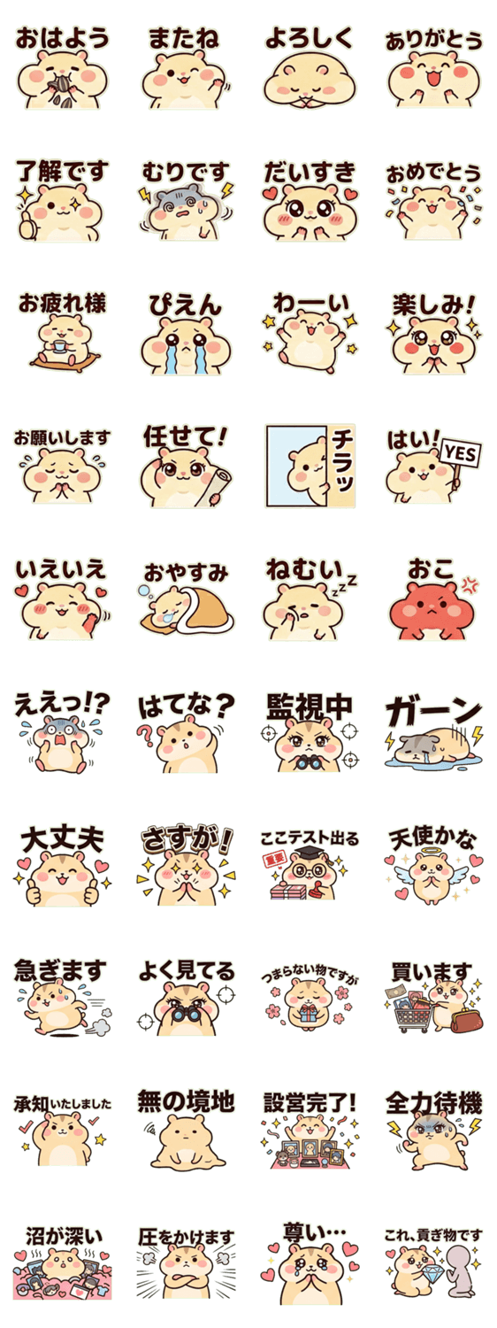 推しへの愛が溢れるオタク女子の日常を、ハムスターが可愛く代弁!報告や気合を入れたい時の返信に最適です。