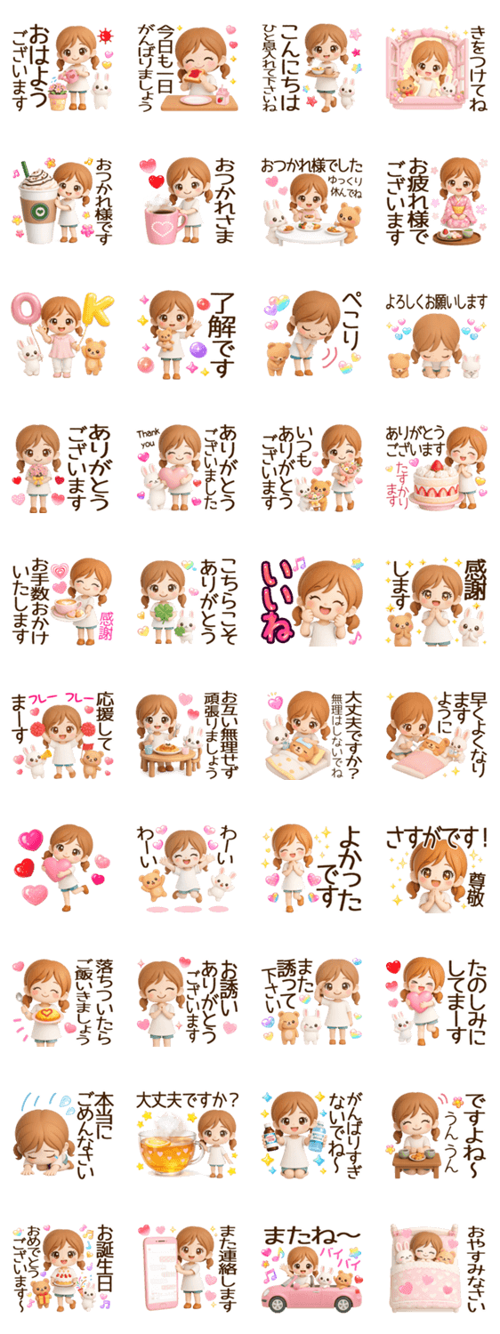ひさしぶり♥かわいいカノジョと「うさくまラブラブスタンプ」からうさくまちゃんが登場♡ず~っと使えるやさしい気づかい言葉がたくさん入ったスタンプです♪/3D