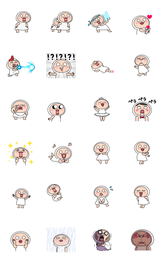 文字少なめ。めっちゃ動くしろめちゃんのスタンプです。おしめちゃん入り。リアクション/毎日使える/おもしろい