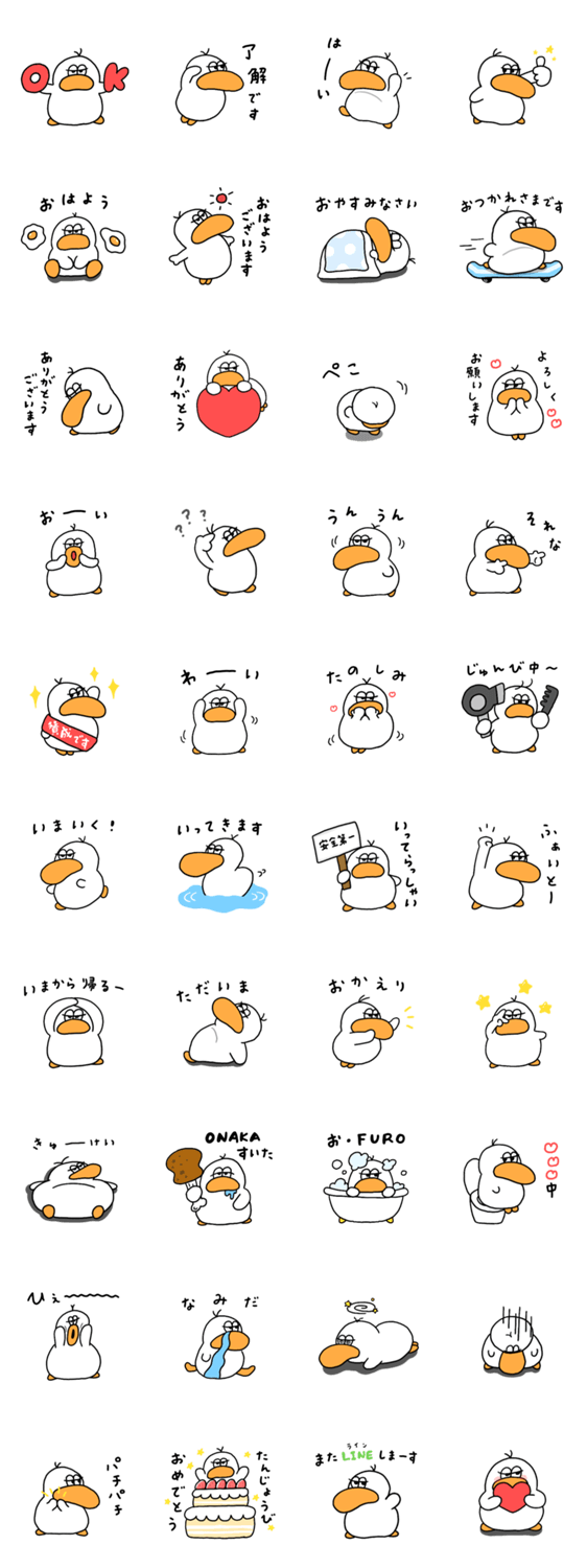 アヒル/ダックダック/ずっと使える/いつでも使える/一年中/挨拶/目つきが悪い/半目/眠たい