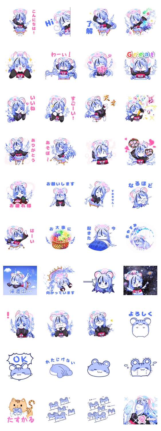 ギャラクティックでジュエリーでエンジェルなねづみの女の子「宙絹羽かぴ」のオリジナルスタンプです。