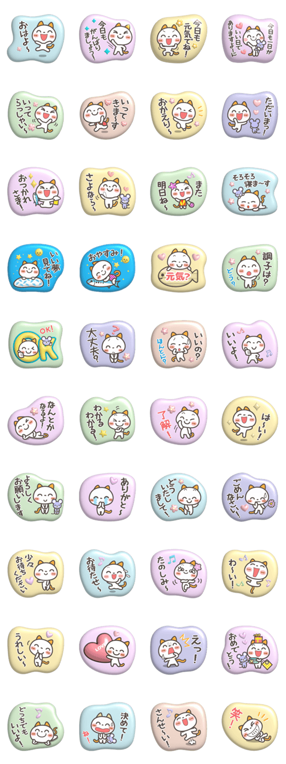 どんな時も笑顔を絶やさない「にこにゃん」のぷっくりシール風♡日常セットです♪ 大切なお友達と笑顔いっぱいの会話を楽しんでくださいね♫