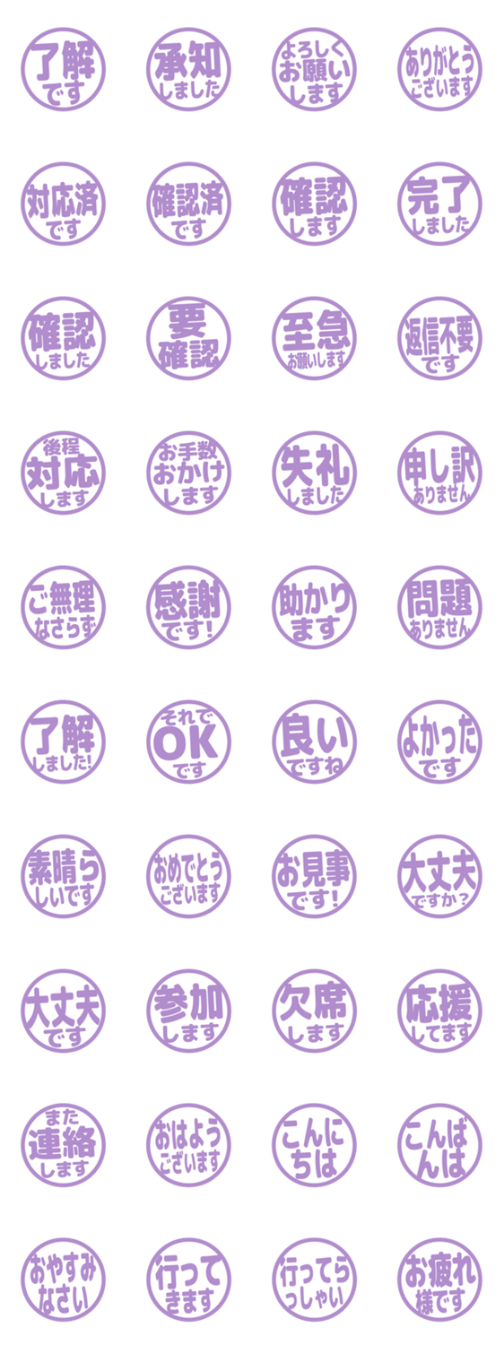 シンプルな敬語のはんこ風スタンプです。毎日の連絡や仕事の返事に使いやすいデザインです。