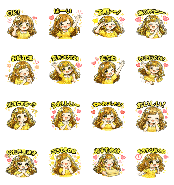 毎日使いやすい、かわいい女の子のスタンプです。 あいさつや日常会話にぴったり。 やさしく気持ちが伝わります♡