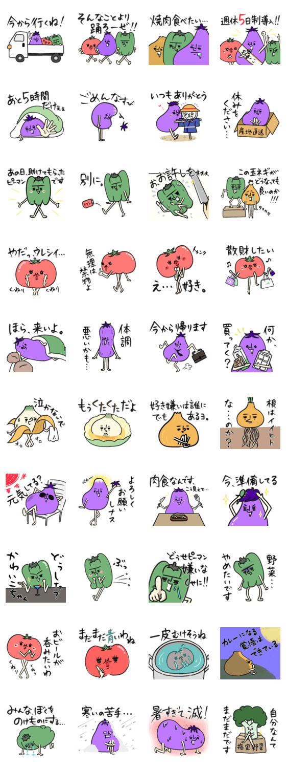 やさしいせかい【野菜たちの生活】 -LINEスタンプマニア