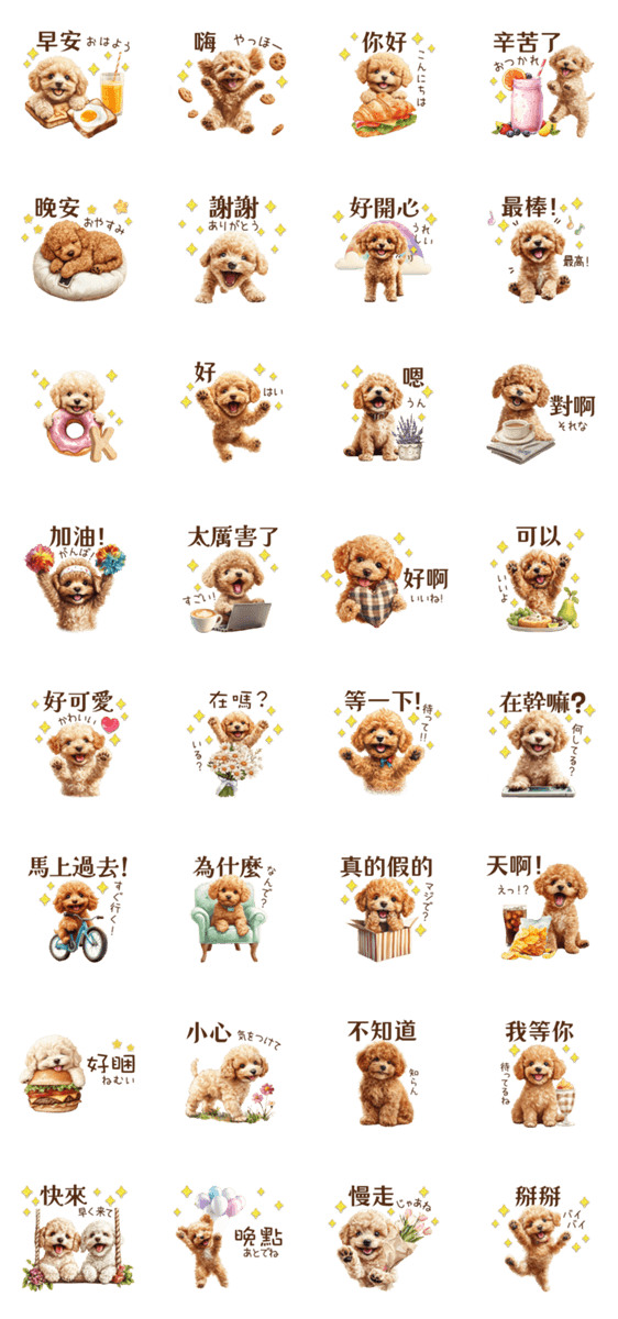 中国語(台湾)♪トイプードルの挨拶 -LINEスタンプマニア