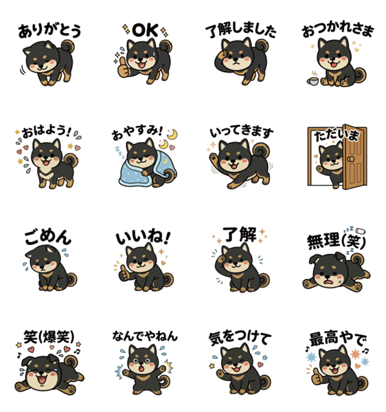 黒柴スタンプ|かわいい日常会話16個セット -LINEスタンプマニア