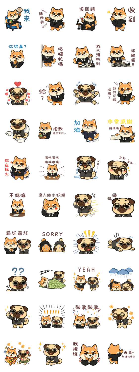 Be the boss in your chats with Boss Shiba and his cute Secretary Pug! Cute, bold, and full of attitude. Perfect for chats, work, and fun moments.