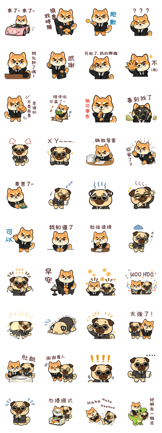 Be the boss in your chats with Boss Shiba and his cute Secretary Pug! Cute, bold, and full of attitude. Perfect for chats, work, and fun moments.