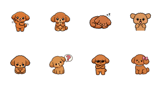 愛くるしいトイプードルのスタンプセット。喜怒哀楽がはっきりしているので、言葉がなくてもあなたの気持ちを可愛く伝えてくれます。トイプードル好きにはたまらないです。
