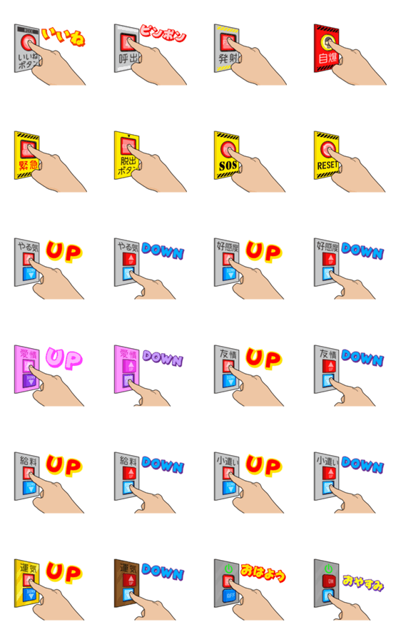 UP&DOWN、いいね、発射、自爆、緊急、脱出、SOS、リセット…etc。いろんなボタンを集めてみました。