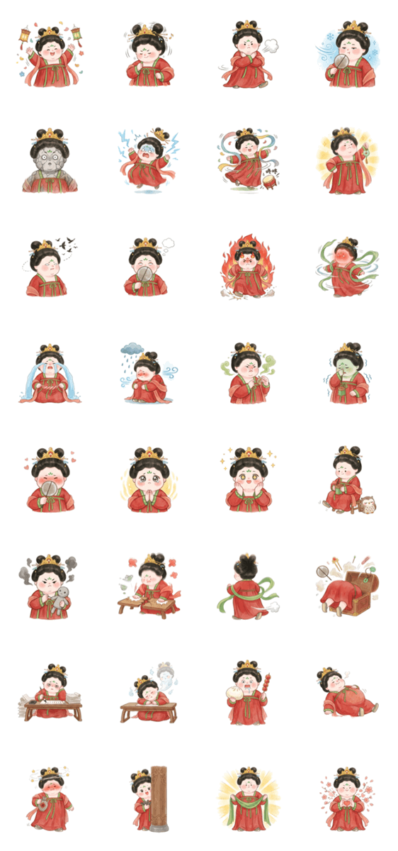 セリフなしでも伝わる。唐風コス+全力リアクション32枚で会話が盛れる!