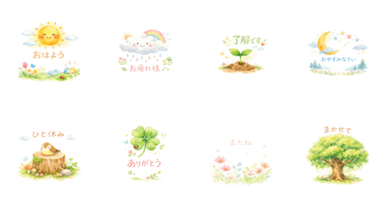 Brighten your chats with soft watercolor art Featuring a smiling sun, fluffy clouds, and flowers, these stickers are perfect for kids and families. Share smiles