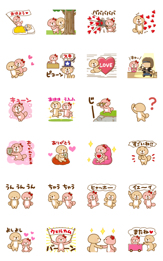 ラッコさんを一途に想い続けるラッ子ちゃんと、鈍感なラッコさんの可愛いカップルスタンプです。人気だったあのスタンプも動かしてみました。恋人/カップル/ラブラブ/夫婦