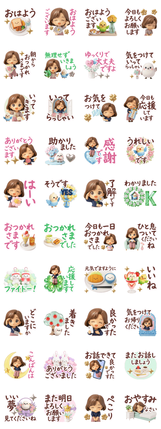一年中ず〜っと使える大人の女性スタンプ♪(女の子・主婦・母・インコ・シマエナガ・敬語・丁寧・気づかい・日常・あいさつ・やさしい・毎日使える・使いやすい・でか文字)