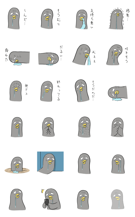 しんどい、だるい、もう無理。そんな日にちょうどいい、終わってるハトのスタンプです。