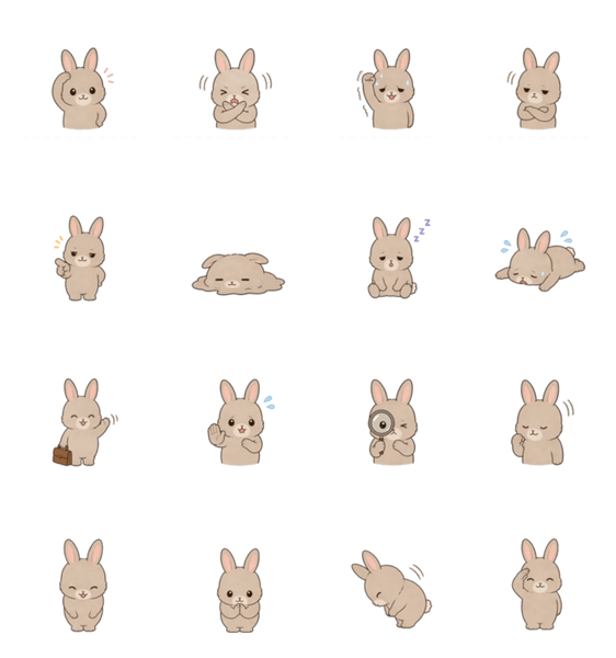 仕事・日常に使えるかわいいうさぎの毎日スタンプ♪ 全16種、テキストなしでシンプルに使えます!