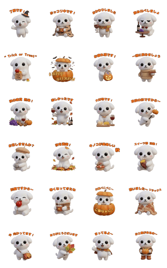 マシュマロ仔犬の秋バージョンのスタンプ -LINEスタンプマニア