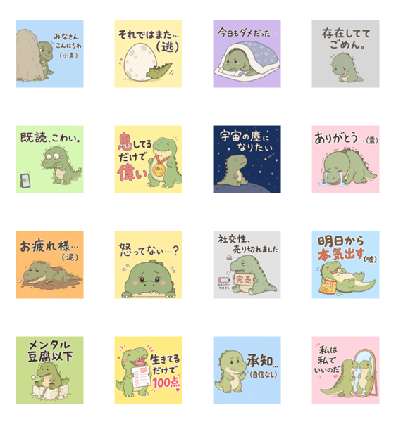 【毎日】今日もダメだったメンタル弱め恐竜 -LINEスタンプマニア