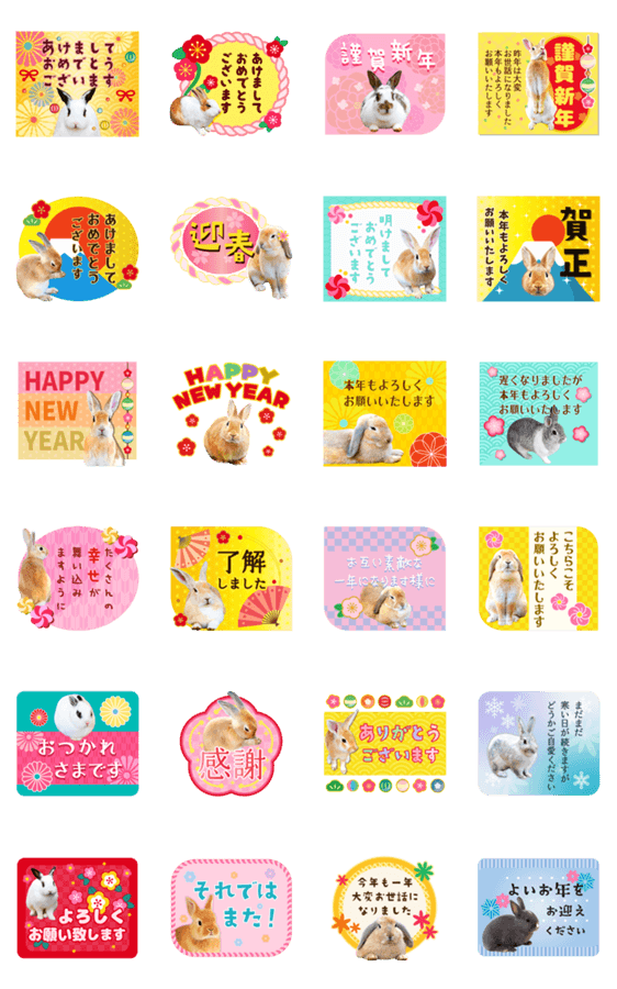 うさぎ写真のお正月・年賀スタンプ【再販】 -LINEスタンプマニア
