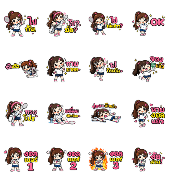 Cute badminton girl stickers for daily chat. Fun, expressive and perfect for everyday conversations!