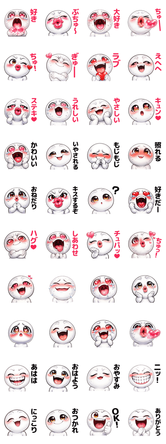 表情強めのリアクションスタンプ。大好きな人や大切な人へ、 ラブな気持ちを伝えられるスタンプです♡