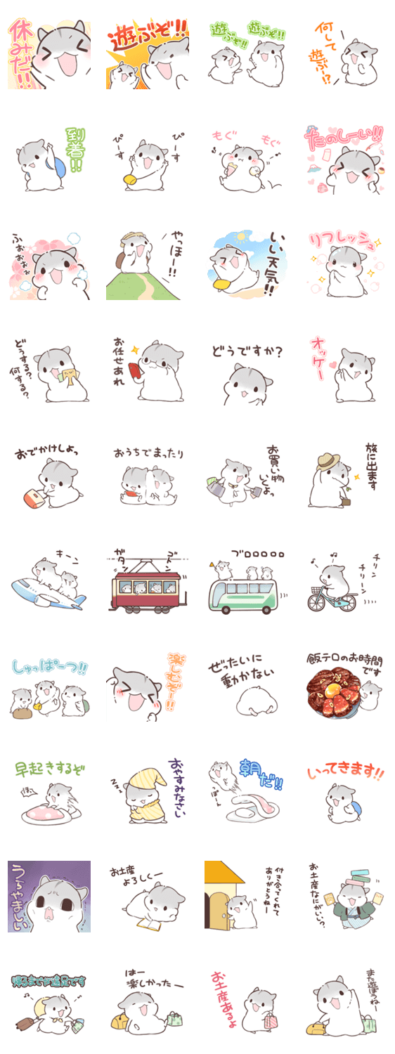 あわはむシリーズ第43弾。お休み前や行楽シーズンに使えるハムスタースタンプです