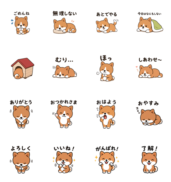 日常会話に使えるゆる柴犬スタンプです。