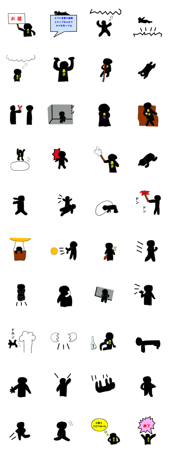 上下に言葉や画像を加えてオチを作りあって楽しむスタンプです。友達と送りあってください。