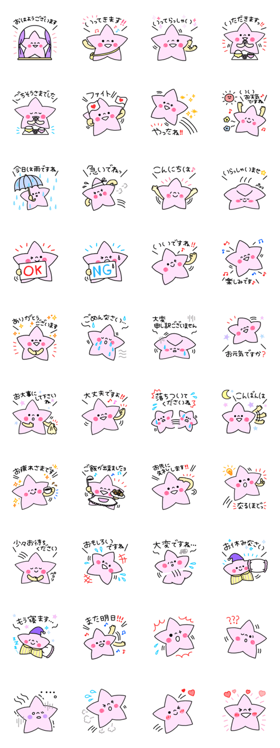 星がおスタンプ(女性編)は、やさしい女性言葉でスタンプを作ってみました。ぜひかわいがってくださいね。