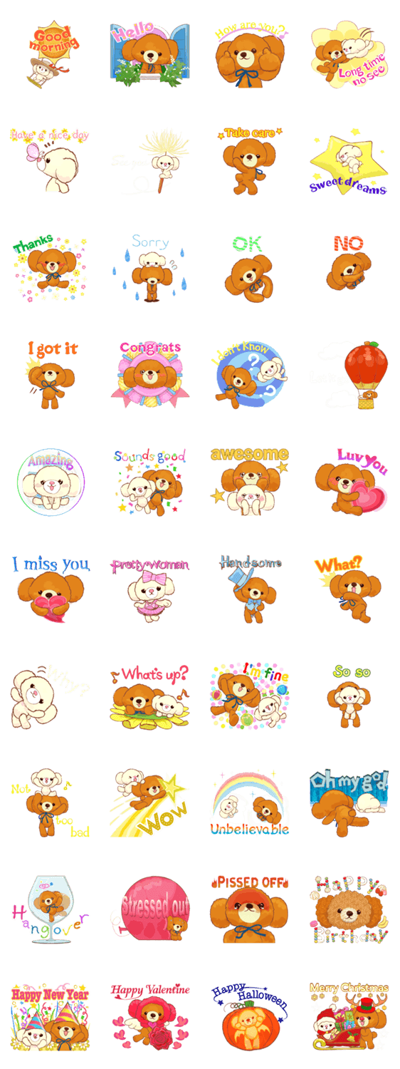 クマのぬいぐるみ『ココとリリ』のメルヘンスタンプ第三弾は英語バージョンです! 世界にはばたけ『ココとリリ』