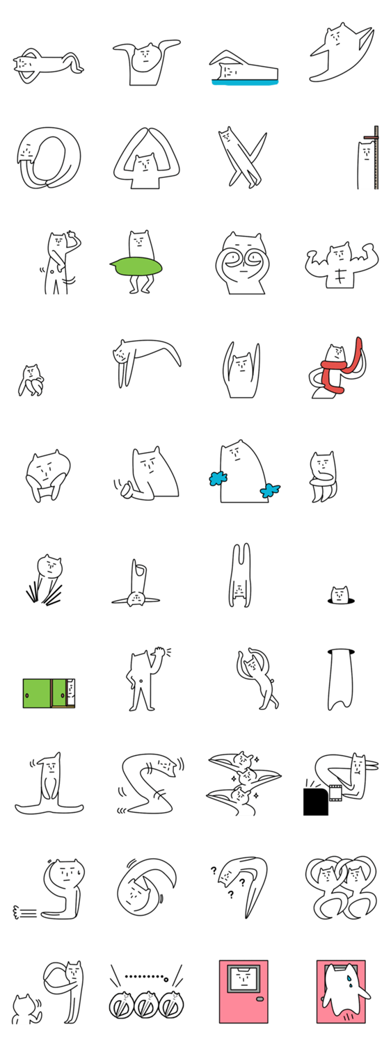 変幻自在な白猫のスタンプです。文字がないので使えるコだと思います。なんとも言えぬイラストと、なんとも言えぬ空間をお楽しみください。