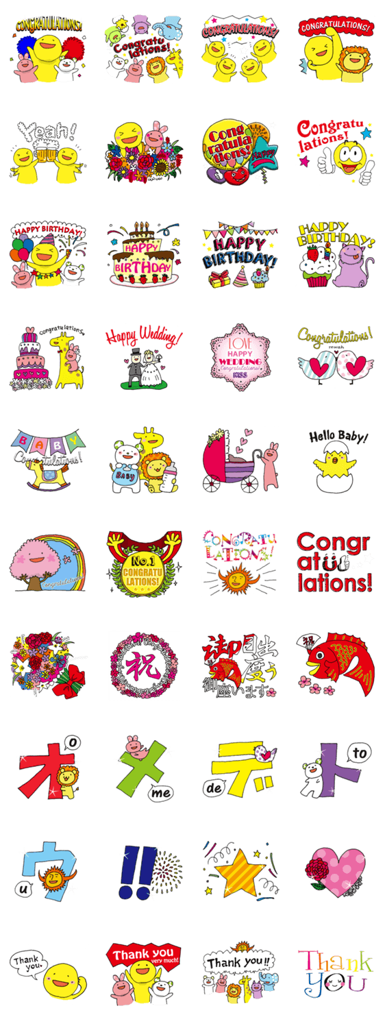 仲間が多ければ多いほど、「おめでとう」を言う機会も多いもの。というわけで、いろんな「おめでとう」をギュ~ッと詰め込みました。見ているだけでなんだかHappyに!