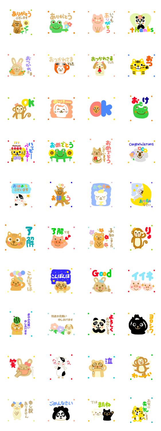 いろいろな動物のスタンプです。毎日の会話にお使い下さい。