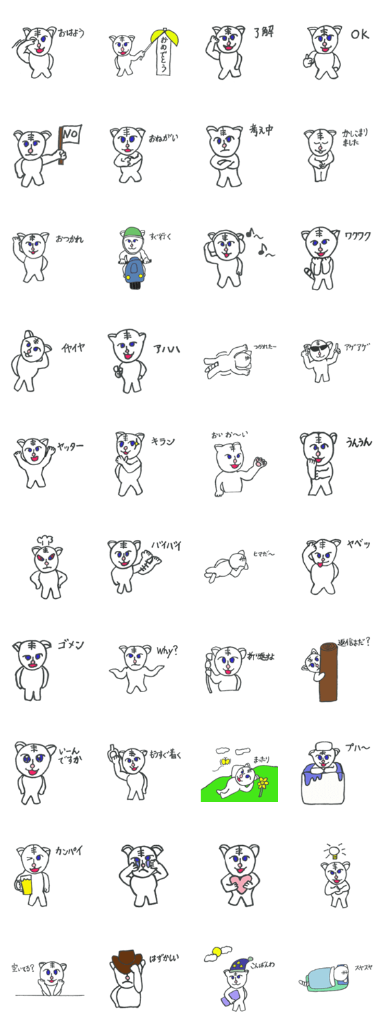 日常表現に便利な、かわいい、のんびりキャラクターのホワイトタイガーです。