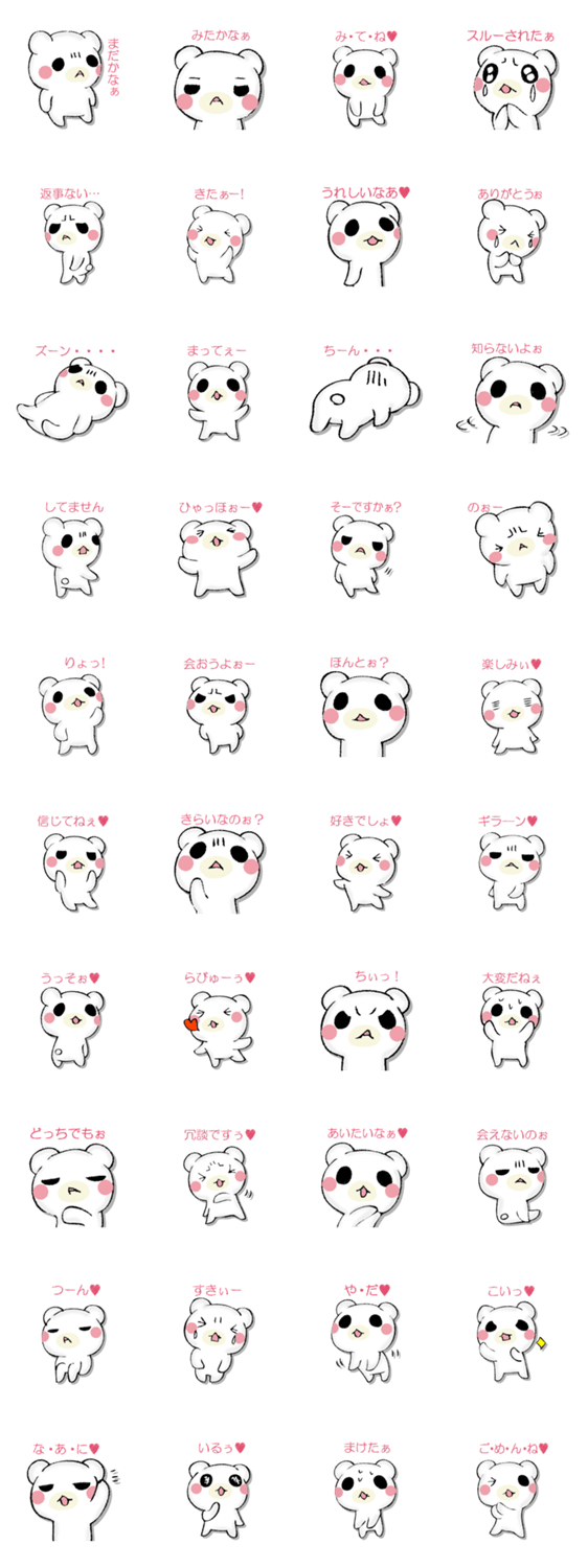 さみしがり屋。かまってほしい。白い小熊のスタンプです。ふんわりとした表情で気持ちを伝えます。いろいろな人におくりやすいスタンプです。