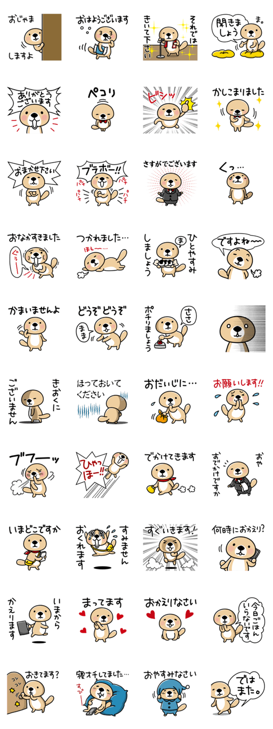 あなたに代わって丁寧に気持ちを伝えるラッコさんの敬語編スタンプです。大切なあの人へのご挨拶に使ってくださいね。