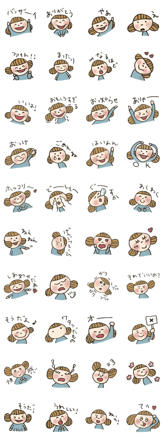 ゆるーく明るい女の子のスタンプです。日常会話に♪