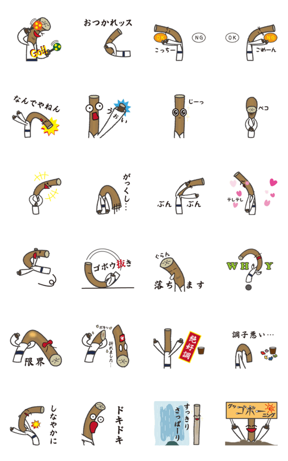 くねくね動いて GO! GO! ゴボウさん -LINEスタンプマニア