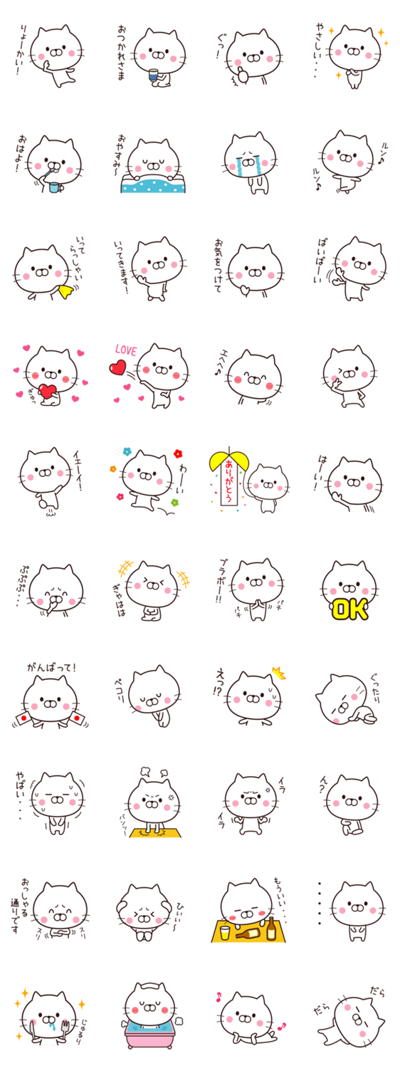 いつでも、どんな場面でも使いやすいネコのスタンプです。
