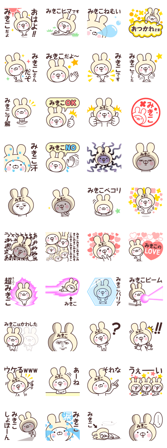 【みきこ】の名前うさぎ -LINEスタンプマニア