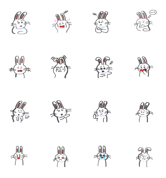 スタンプだけで笑顔になるキュートで、明るい表情にしてみたよ。表情豊かな愛くるしいウサギのベッキーのシリーズ第3弾です。皆さん、よろしくね。