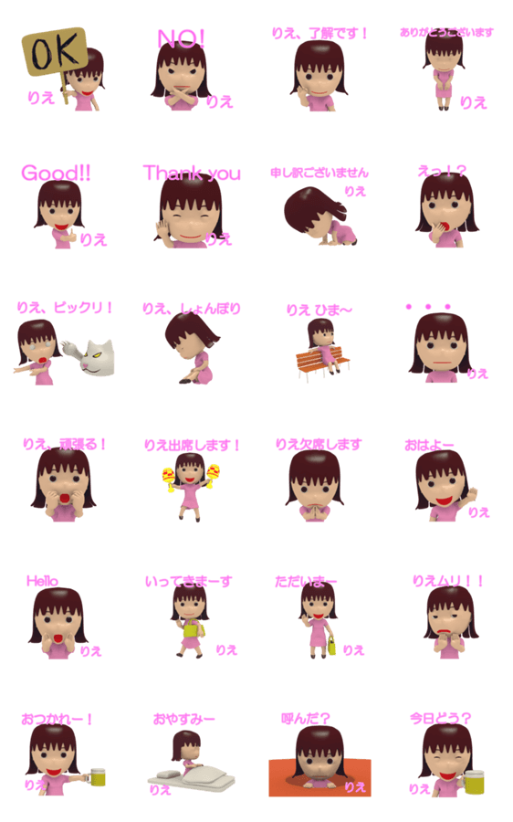 「りえ」女の子スタンプ3D