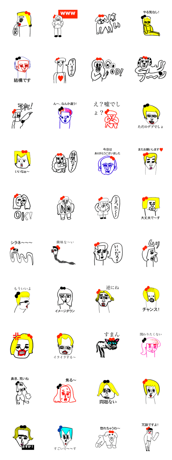 赤いリボンをした人々のスタンプです。