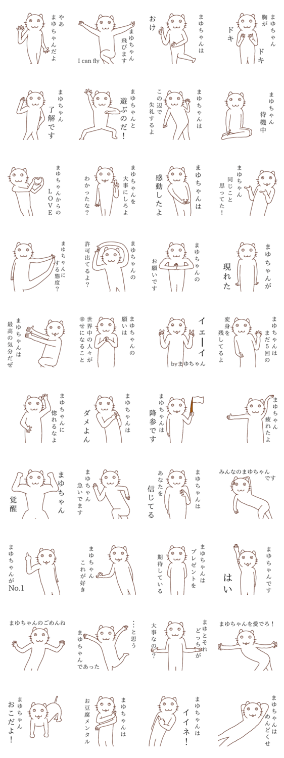 愛されたまゆちゃんのためのスタンプ。マユ、まゆみ、まゆこ、まゆか、まゆな、まゆき、まゆう、まゆの、まゆり、真由、麻友、茉優、真結などの名前の人が使えます。