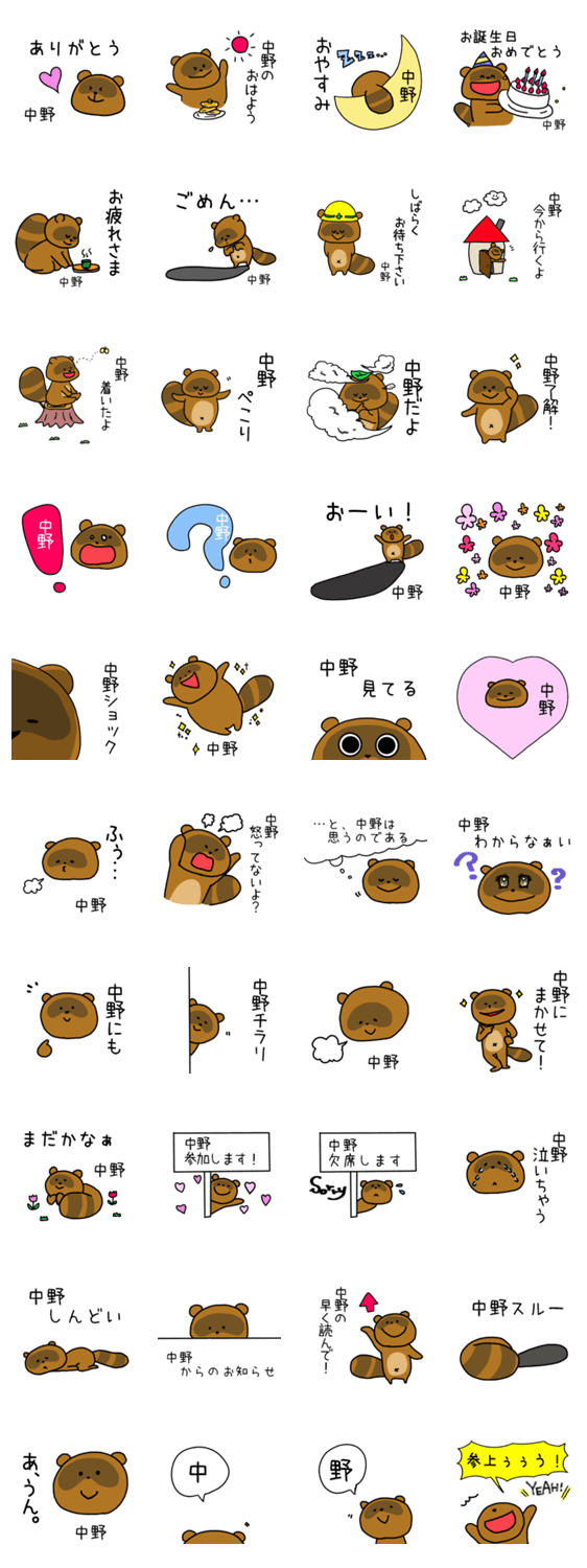 スタンプ説明 中野さん専用のスタンプです。(なかの、ナカノ)