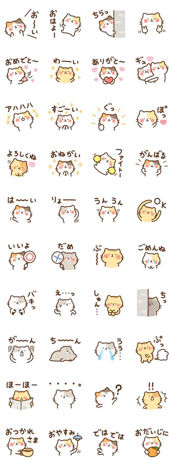 毎日よく使うあいさつや、ゆる~い返事が多めのにゃんこスタンプです。