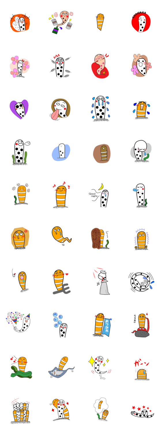 いろんな顔のちんあなご達が何とも可愛いスタンプです。ニョローン!