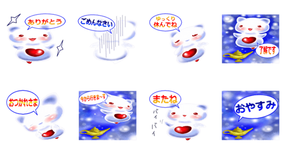 魔法のランプから飛び出たのは流氷の天使【クリオネ】だった! 可愛い・癒し系スタンプです よろしくお願いします!