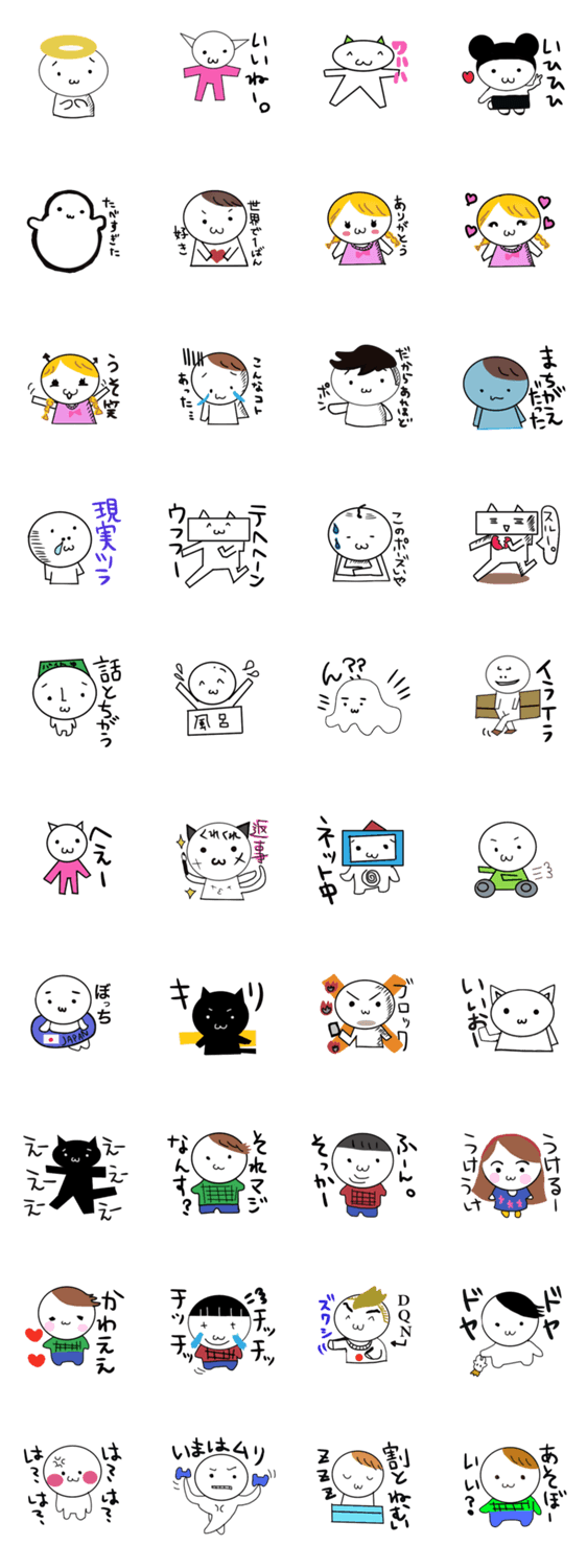 白ネコのあいうえお・・・ってるスタンプ